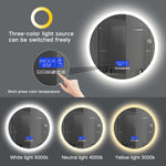 The mirror offers three lighting options controlled by a responsive touch button. Short-press the Light button to switch between White (6000K), Neutral (4000K), and Warm (3000K). Adjust the brightness to your ideal level for a perfect lighting experience.